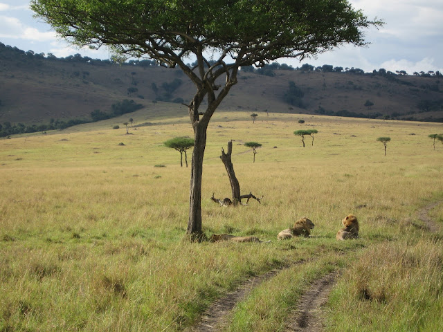 And a group of bachelor lions lounging in a shade of a tree, escaping the afternoon heat. They took no notice of us whatsoever but did a very convincing impression of cats.